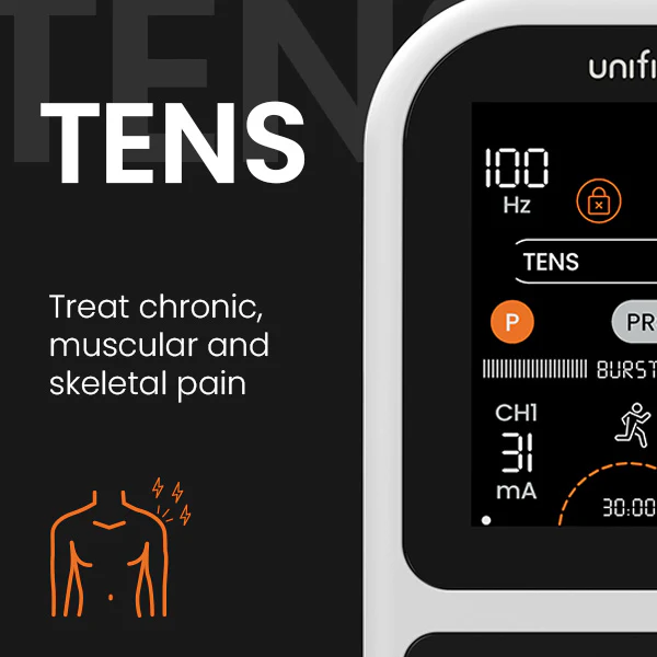 Ulga w bólu w zasięgu ręki: Rozwiązania Unifita skutecznie eliminują przewlekły ból, oferując 12 programów TENS, które stymulują uwalnianie endorfin i aktywują mechanizmy bramki bólowej, przynosząc ulgę Twoim mięśniom i stawom.