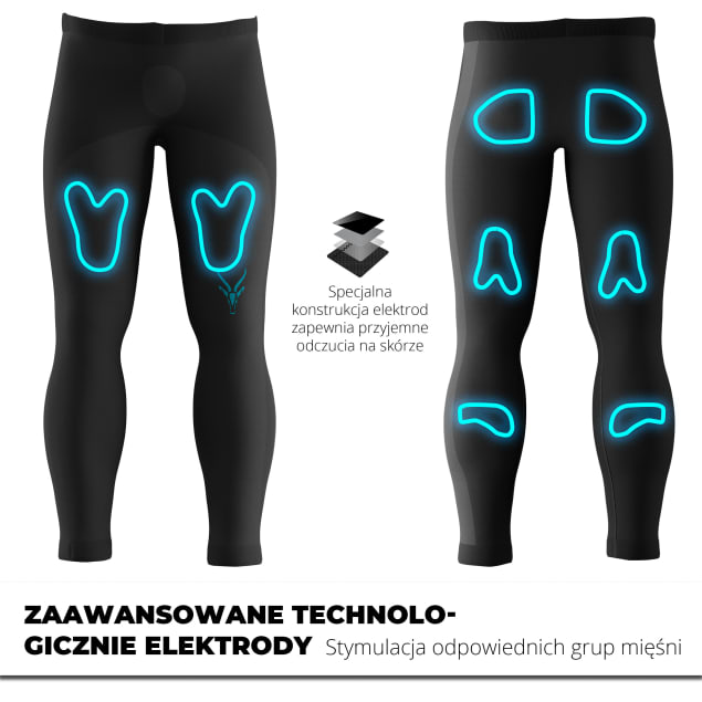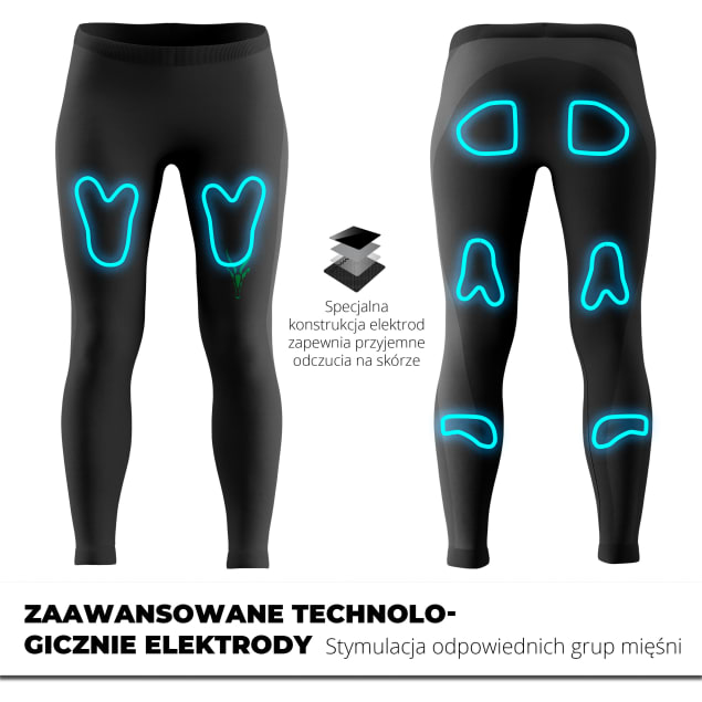Specjalna konstrukcja legginsów umożliwia stymulację nie tylko mięśni ud i pośladków, ale także łydek, odpowiadając na potrzeby najbardziej wymagających użytkowników. Intuicyjny system pozwala na precyzyjną regulację intensywności impulsów, dostosowując trening do indywidualnych celów.